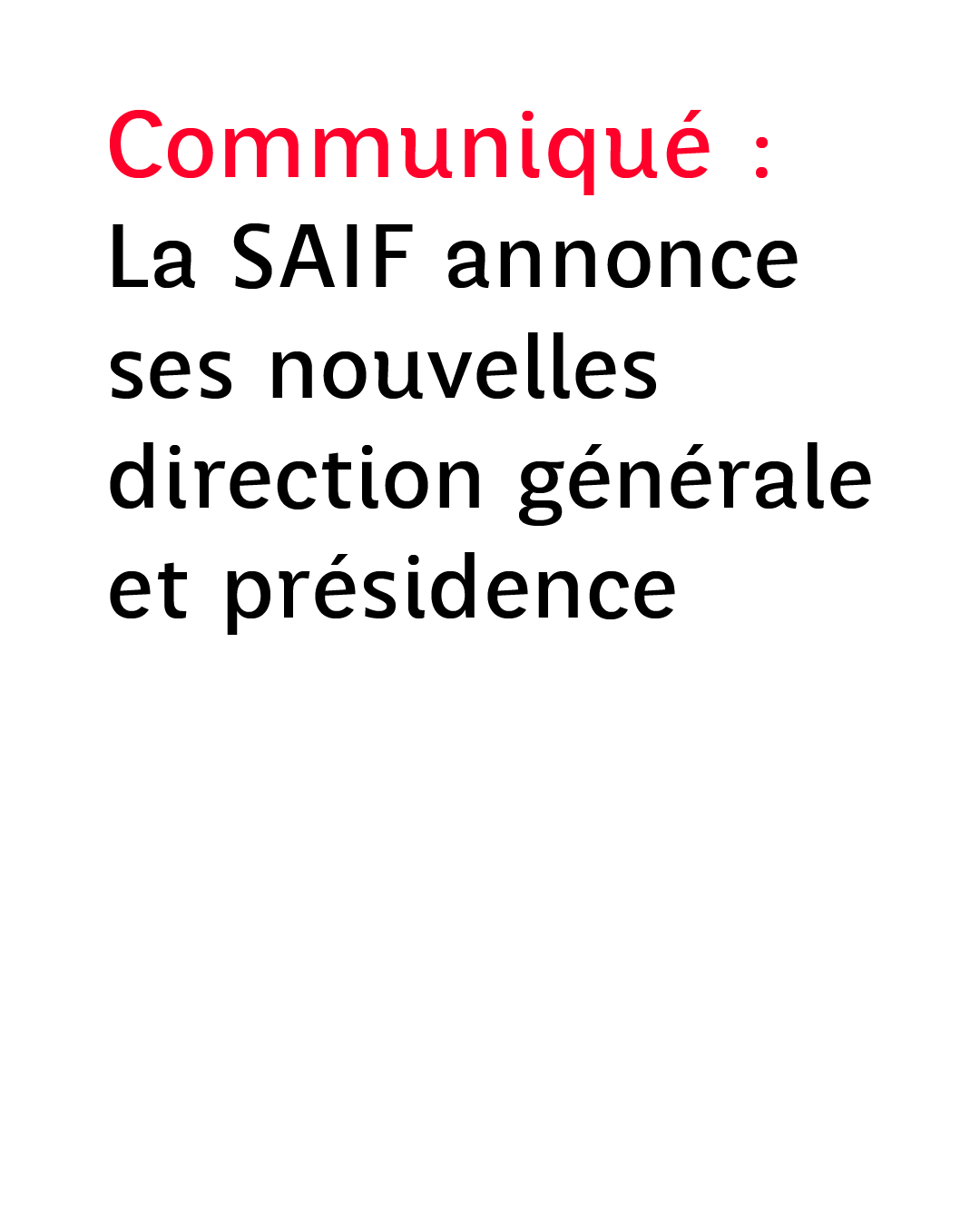 Nouvelle direction générale et nouvelle présidence de la SAIF :