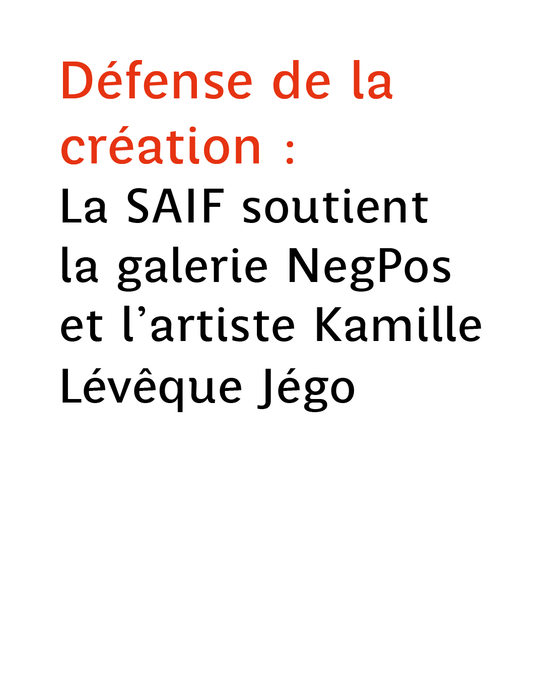 Soutien à NegPos et Kamille Lévêque Jégo : La SAIF défend la création